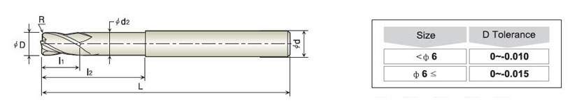 二刃深溝圓鼻銑刀-石墨圓鼻銑刀